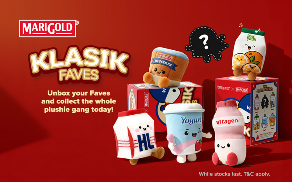 Spend RM20 or more on any VITAGEN or MARIGOLD refrigerated products to get 1 Klasik Faves Blind Box.